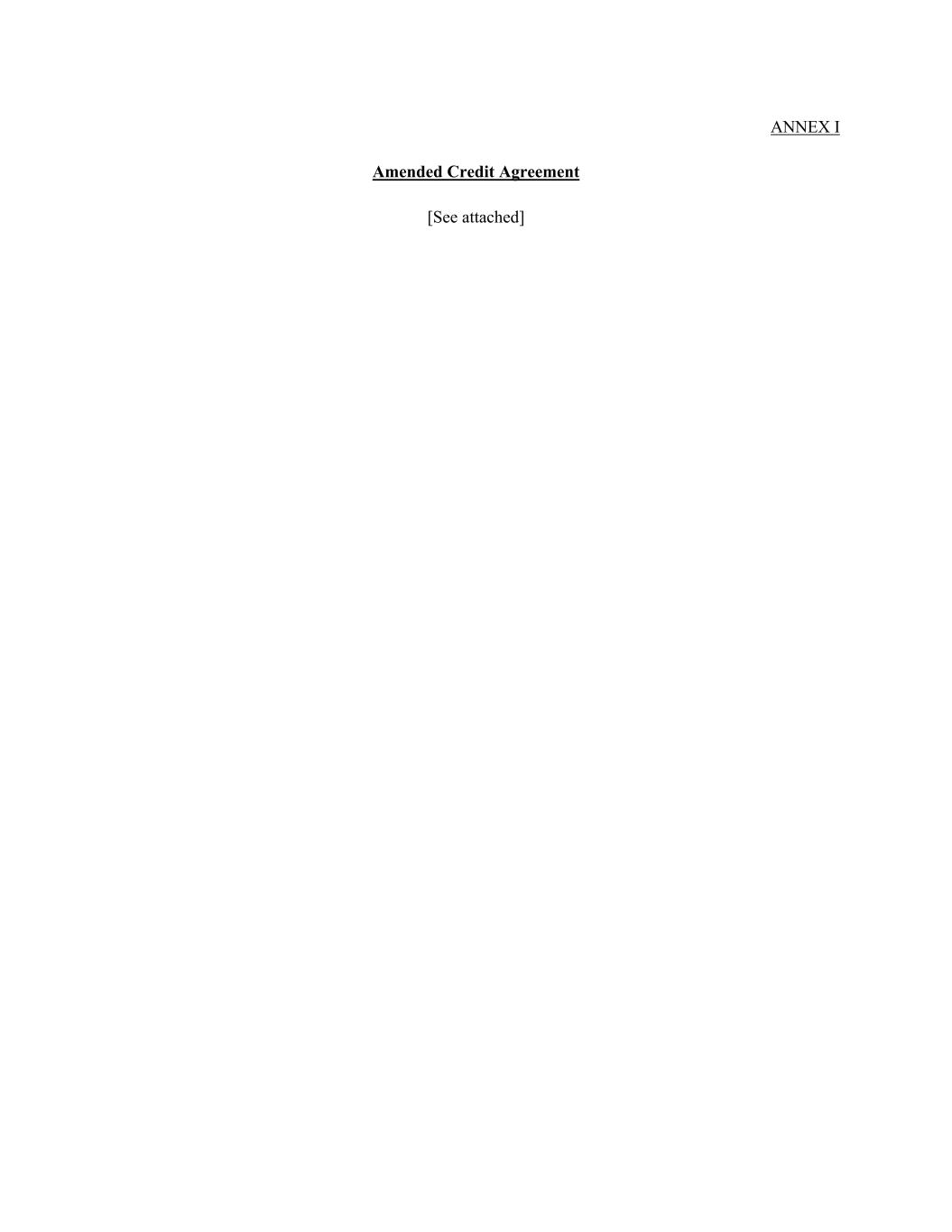 ANNEX I Amended Credit Agreement [See attached]