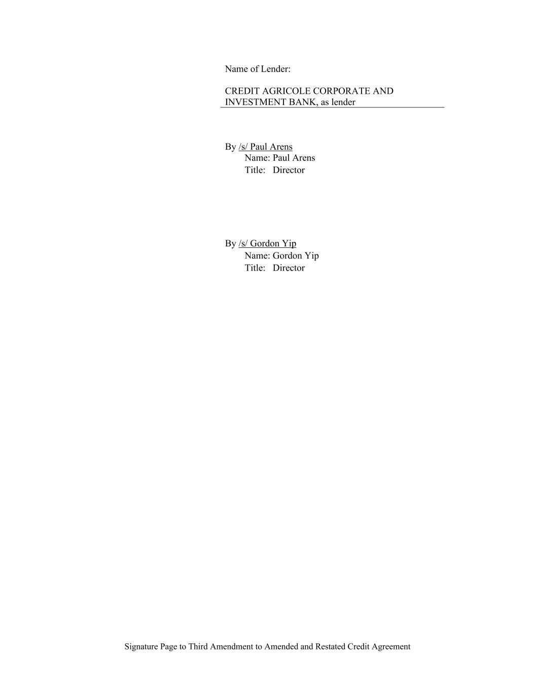 Signature Page to Third Amendment to Amended and Restated Credit Agreement Name of Lender: CREDIT AGRICOLE CORPORATE AND INVESTMENT BANK, as lender By /s/ Paul Arens Name: Paul Arens Title: Director By /s/ Gordon Yip Name: Gordon Yip Title: Director