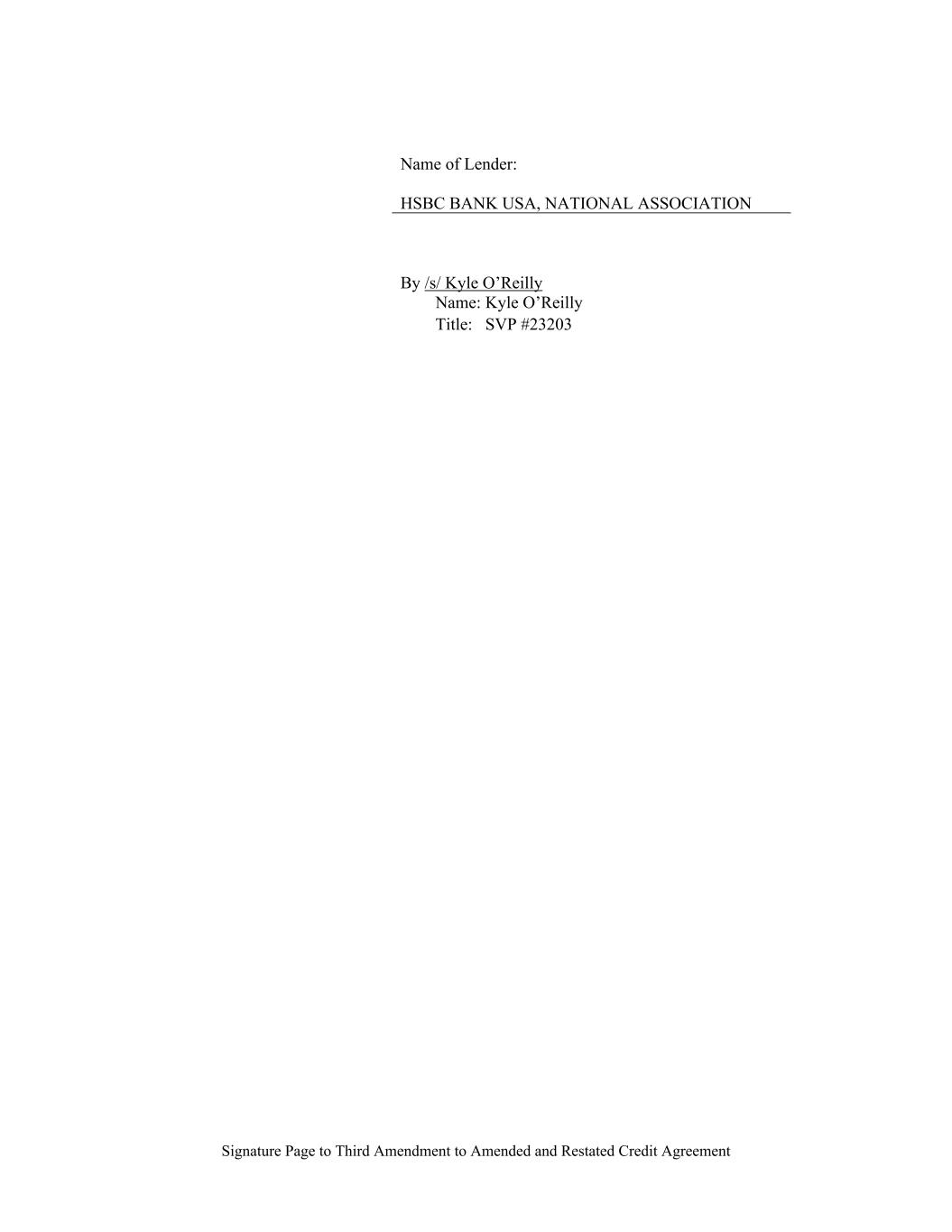 Signature Page to Third Amendment to Amended and Restated Credit Agreement Name of Lender: HSBC BANK USA, NATIONAL ASSOCIATION By /s/ Kyle O’Reilly Name: Kyle O’Reilly Title: SVP #23203