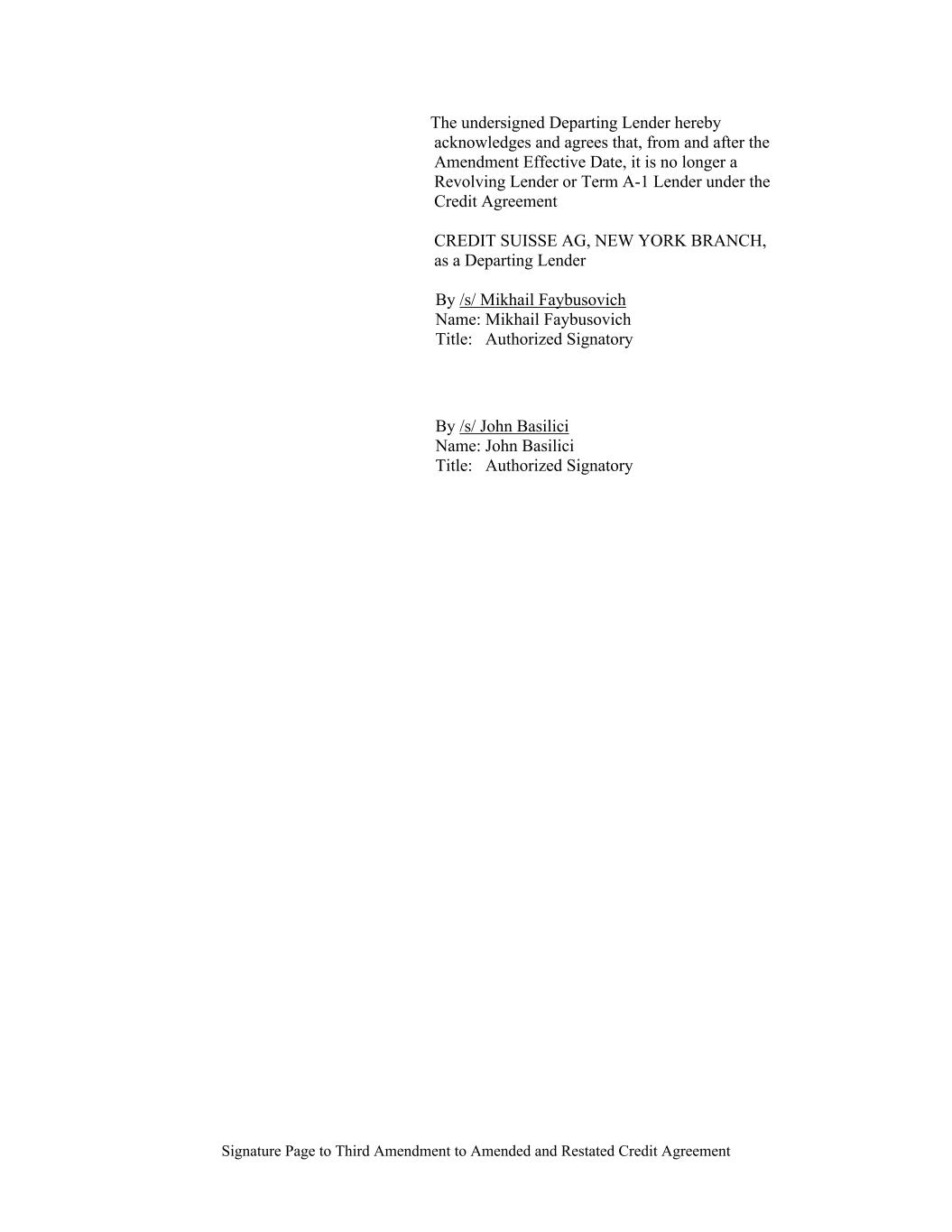 Signature Page to Third Amendment to Amended and Restated Credit Agreement The undersigned Departing Lender hereby acknowledges and agrees that, from and after the Amendment Effective Date, it is no longer a Revolving Lender or Term A-1 Lender under the Credit Agreement CREDIT SUISSE AG, NEW YORK BRANCH, as a Departing Lender By /s/ Mikhail Faybusovich Name: Mikhail Faybusovich Title: Authorized Signatory By /s/ John Basilici Name: John Basilici Title: Authorized Signatory