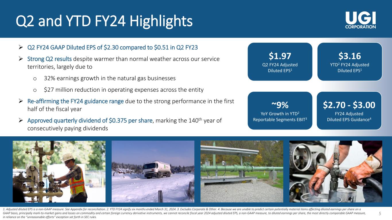 1 1 Second Quarter Fiscal 2024 Results & Business Update 1 Ma r i o L o n g h i Interim President and CEO, UGI Corporation S e a n O ’ B r i e n Chief Financial Officer, UGI Corporation Ro b e r t F. B e a rd Chief Operations Officer, UGI Corporation
