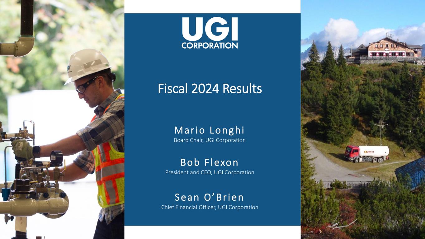 1 1 Fiscal 2024 Results 1 Ma r i o L o n g h i Board Chair, UGI Corporation B o b F l exo n President and CEO, UGI Corporation S e a n O ’ B r i e n Chief Financial Officer, UGI Corporation
