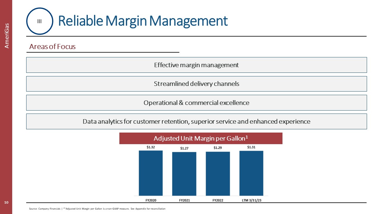 Areas of Focus  Effective margin management  Streamlined delivery channels  Operational & commercial excellence  Data analytics for customer retention, superior service and enhanced experience   Reliable Margin Management  III  Source: Company Financials | (1) Adjusted Unit Margin per Gallon is a non-GAAP measure. See Appendix for reconciliation   Adjusted Unit Margin per Gallon1