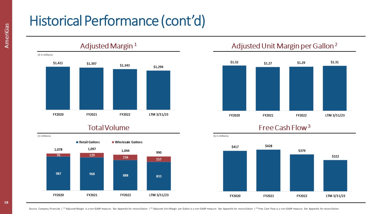 Historical Performance (cont’d)  Adjusted Margin 1  ($ in millions)  (in millions)  Adjusted Unit Margin per Gallon 2  Total Volume  Source: Company Financials | (1) Adjusted Margin is a non-GAAP measure. See Appendix for reconciliation | (2) Adjusted Unit Margin per Gallon is a non-GAAP measure. See Appendix for reconciliation | (3) Free Cash Flow is a non-GAAP measure. See Appendix for reconciliation  Free Cash Flow 3  ($ in millions)