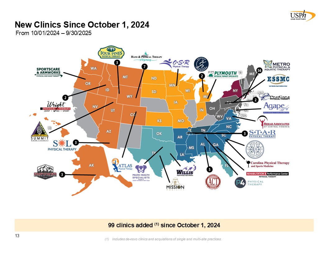New Clinics Since October 1, 2024  13  99 clinics added (1) since October 1, 2024  From 10/01/2024 – 9/30/2025  WV  VT  VA  SC  PA  OH  NJ  NC  ME  MD  MA  GA  FL  CT  TX  OK  MS  LA  AR  AL  AK  TN  5  Includes de-novo clinics and acquisitions of single and multi-site practices.