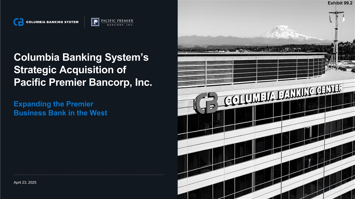 Exhibit 99.2 Columbia Banking System’s Strategic Acquisition of Pacific Premier Bancorp, Inc. Expanding the Premier Business Bank in the West April 23, 2025