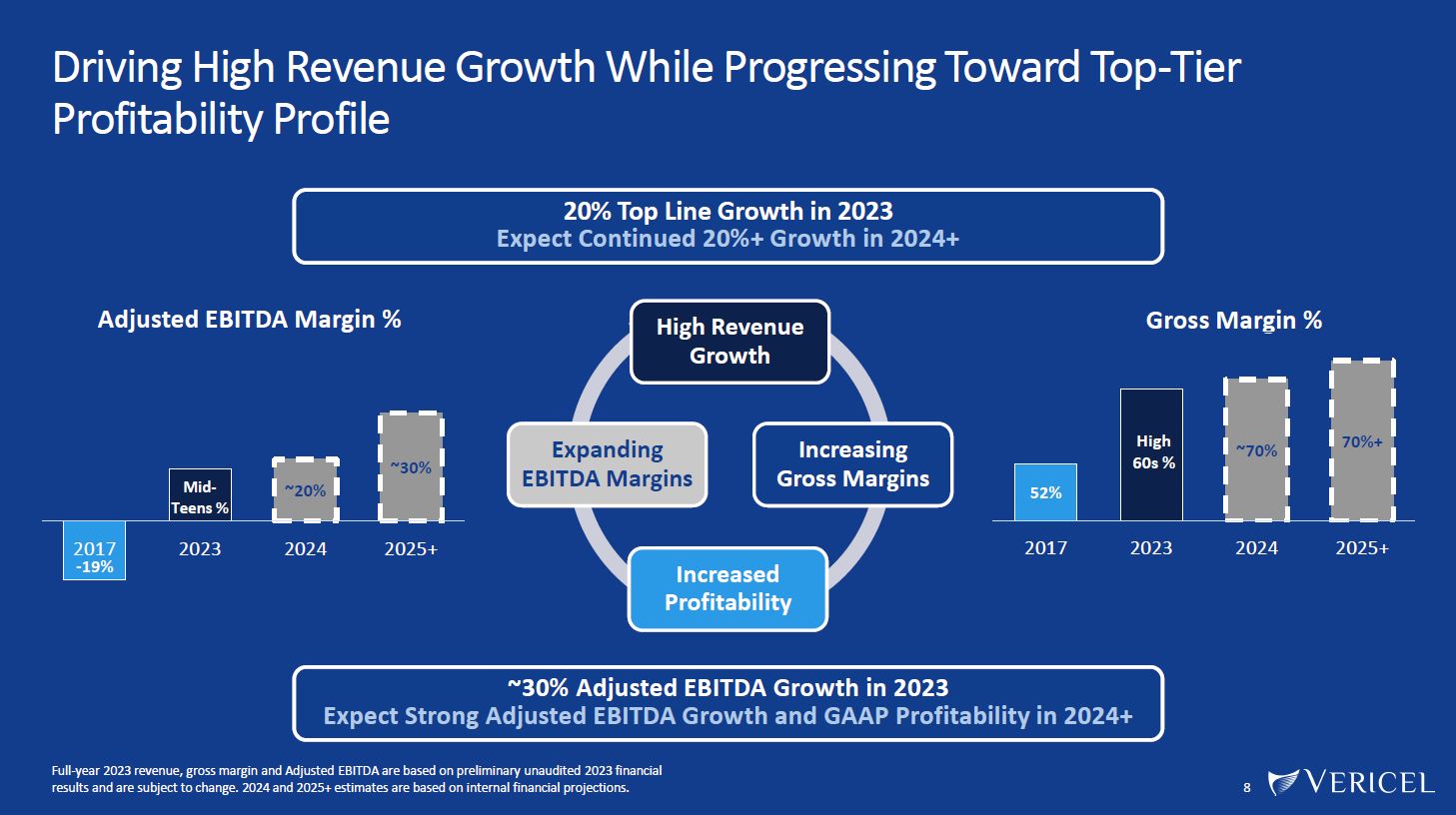 Core Portfolio Plus Multiple New Product Launches Expected to Drive Further Strong Revenue Growth in 2024 and Beyond  7  Durable Growth Platform  Significantly underpenetrated markets  Limited competition with strong barriers to entry  Strong reimbursement profiles  +  With Additional Growth Drivers in 2024+  First full year of NexoBrid revenue in 2024  MACI Arthro launch in Q3 2024, with first full year of  revenue in 2025  2024 2025  20%+  20%+  2017  2018 2019 2020 2021  2022  2023  Top-Tier Revenue Growth  Sports Med Burn Care  ~$197.5M  +20%  + +  Full-year 2023 revenue is based on preliminary unaudited 2023 financial results and is subject to change; 2024 and 2025 estimates based on internal financial projections.