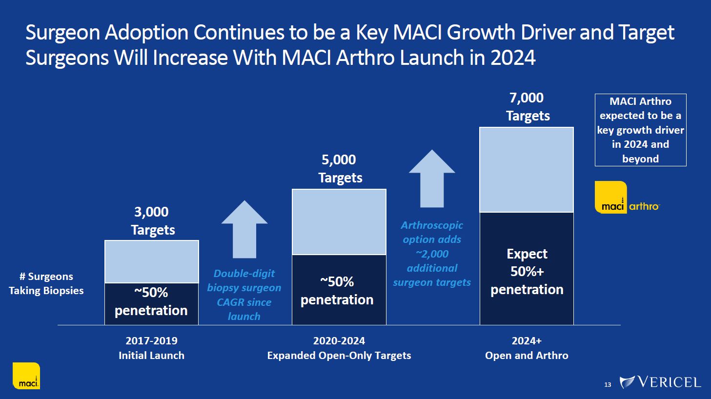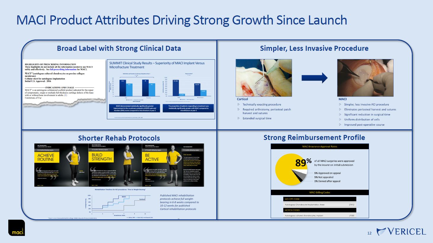 MACI Product Attributes Driving Strong Growth Since Launch  12  Broad Label with Strong Clinical Data  Shorter Rehab Protocols  Strong Reimbursement Profile  Simpler, Less Invasive Procedure