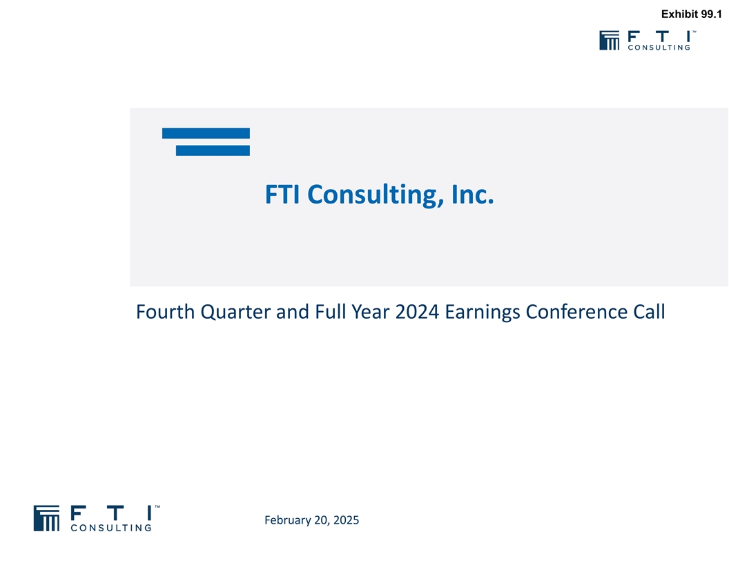 Exhibit 99.1 FTI Consulting, Inc. Fourth Quarter and Full Year 2024 Earnings Conference Call February 20, 2025