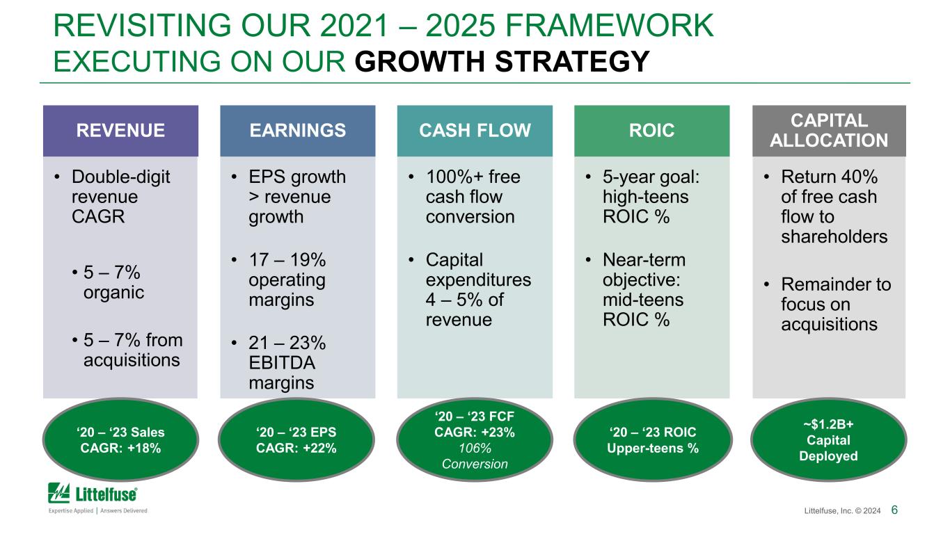 5Littelfuse, Inc. © 2024 2021 – 2025 GROWTH STRATEGY EMPOWERING A SUSTAINABLE, CONNECTED, AND SAFER WORLD Our capabilities, investments & diversification deliver significant value