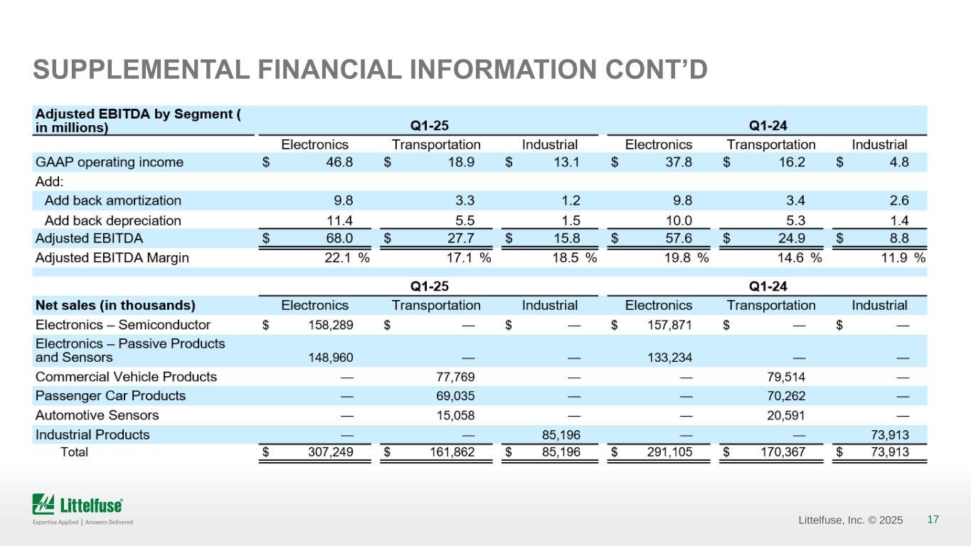 16Littelfuse, Inc. © 2025 SUPPLEMENTAL FINANCIAL INFORMATION CONT’D