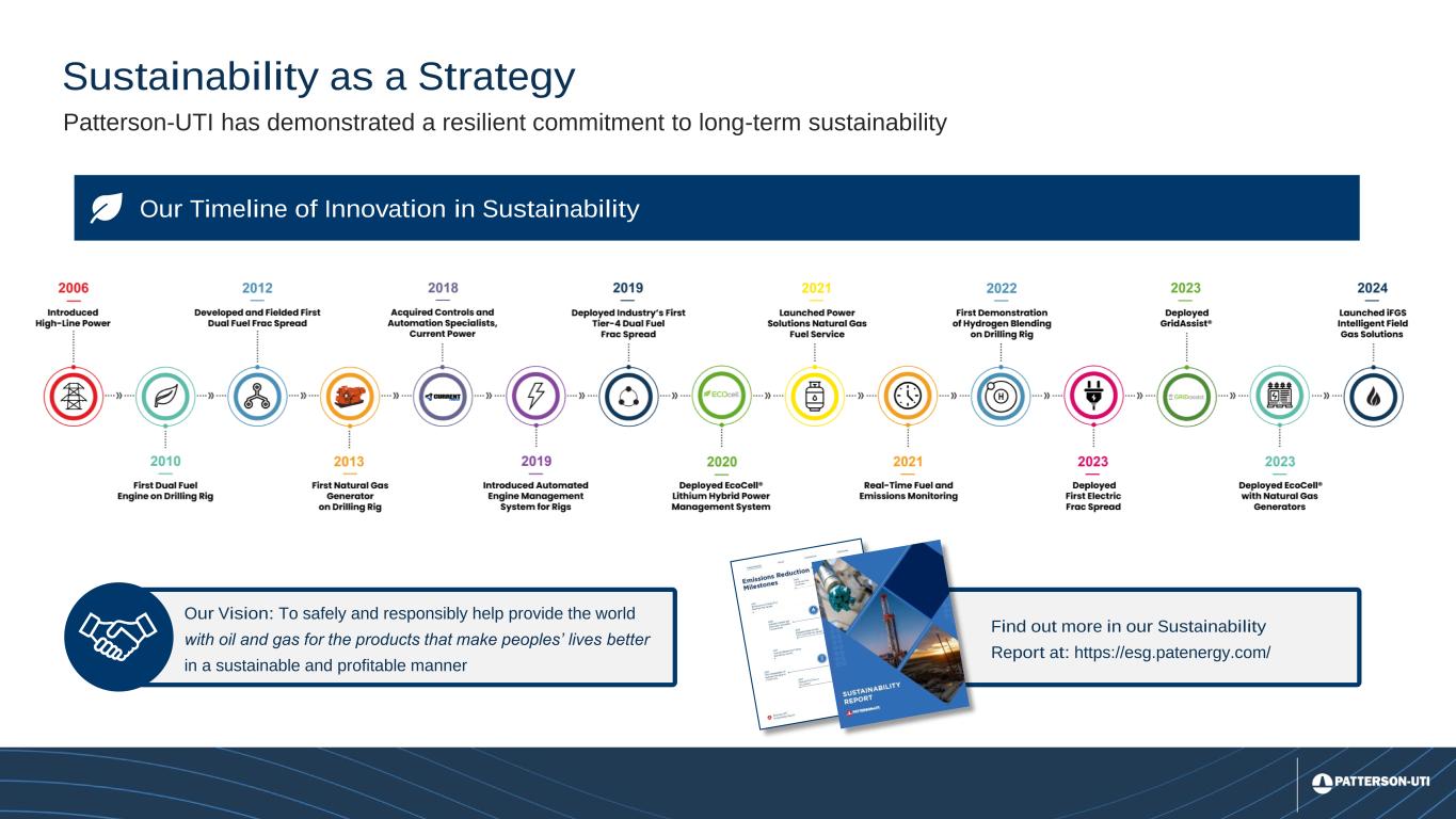23 Sustainability as a Strategy Our Timeline of Innovation in Sustainability Our Vision: To safely and responsibly help provide the world with oil and gas for the products that make peoples’ lives better in a sustainable and profitable manner Find out more in our Sustainability Report at: https://esg.patenergy.com/ Patterson-UTI has demonstrated a resilient commitment to long-term sustainability