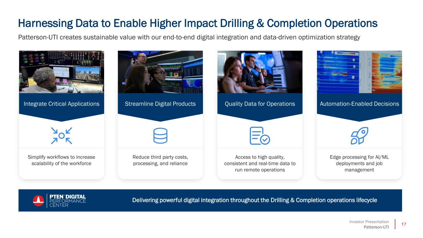 17Investor Presentation Patterson-UTI Harnessing Data to Enable Higher Impact Drilling & Completion Operations Patterson-UTI creates sustainable value with our end-to-end digital integration and data-driven optimization strategy Simplify workflows to increase scalability of the workforce Access to high quality, consistent and real-time data to run remote operations Edge processing for AI/ML deployments and job management Reduce third party costs, processing, and reliance Delivering powerful digital integration throughout the Drilling & Completion operations lifecycle Integrate Critical Applications Streamline Digital Products Quality Data for Operations Automation-Enabled Decisions