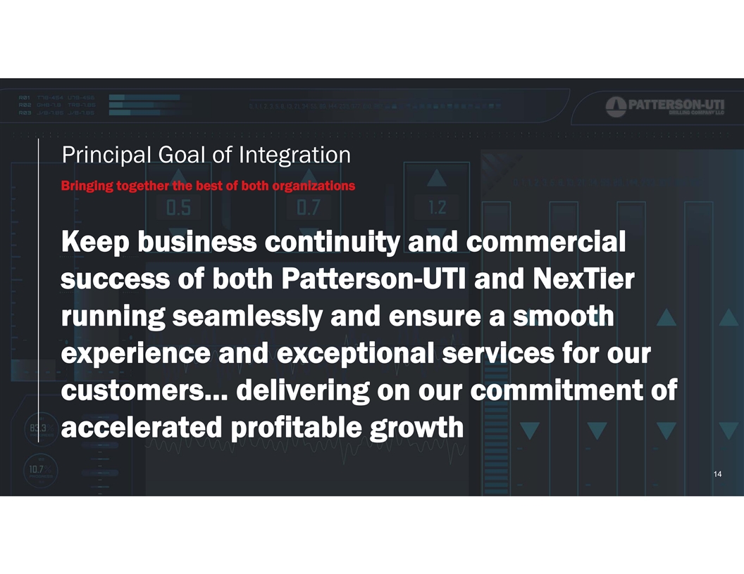 Principal Goal of Integration Bringing together the best of both organizations Keep business continuity and commercial success of both Patterson-UTI and NexTier running seamlessly and ensure a smooth experience and exceptional services for our customers… delivering on our commitment of accelerated profitable growth 1414