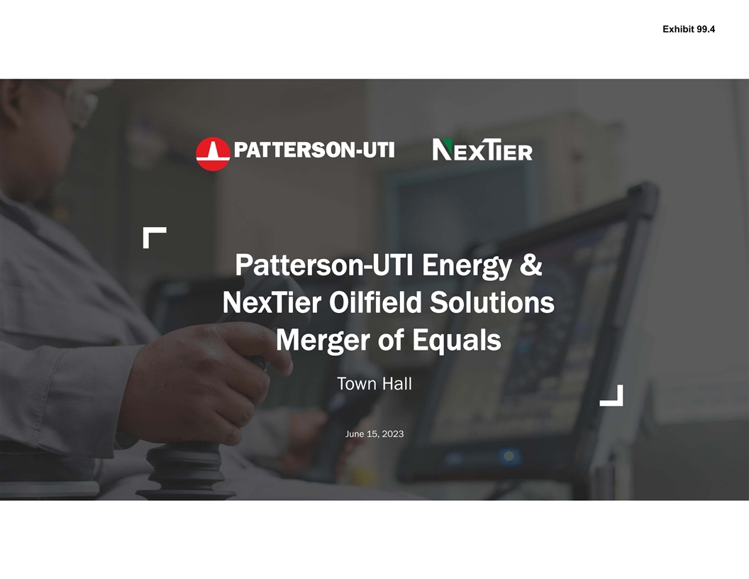 Exhibit 99.4 Patterson-UTI Energy & NexTier Oilfield Solutions Merger of Equals Town Hall June 15, 2023