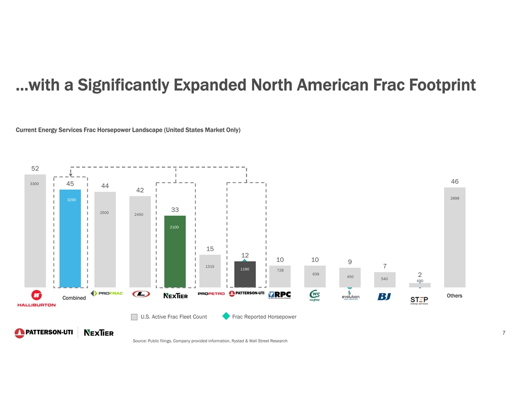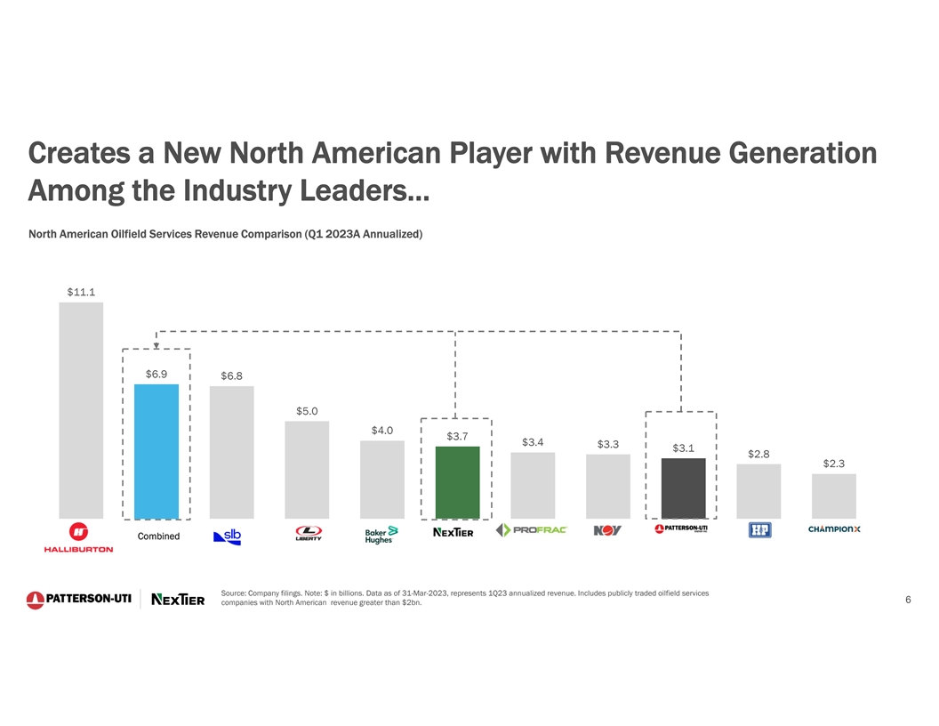 Creates a New North American Player with Revenue Generation Among the Industry Leaders… North American Oilfield Services Revenue Comparison (Q1 2023A Annualized) $11.1 $6.9 $6.8 $5.0 $4.0 $3.7 $3.4 $3.3 $3.1 $2.8 $2.3 Combined Source: Company filings. Note: $ in billions. Data as of 31-Mar-2023, represents 1Q23 annualized revenue. Includes publicly traded oilfield services 6 companies with North American revenue greater than $2bn.