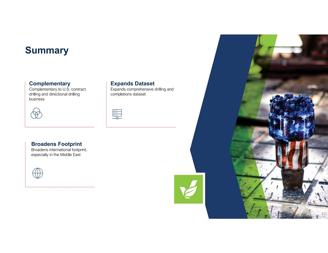 Summary Complementary Expands Dataset Complementary to U.S. contract Expands comprehensive drilling and drilling and directional drilling completions dataset business Broadens Footprint Broadens international footprint, especially in the Middle East 17