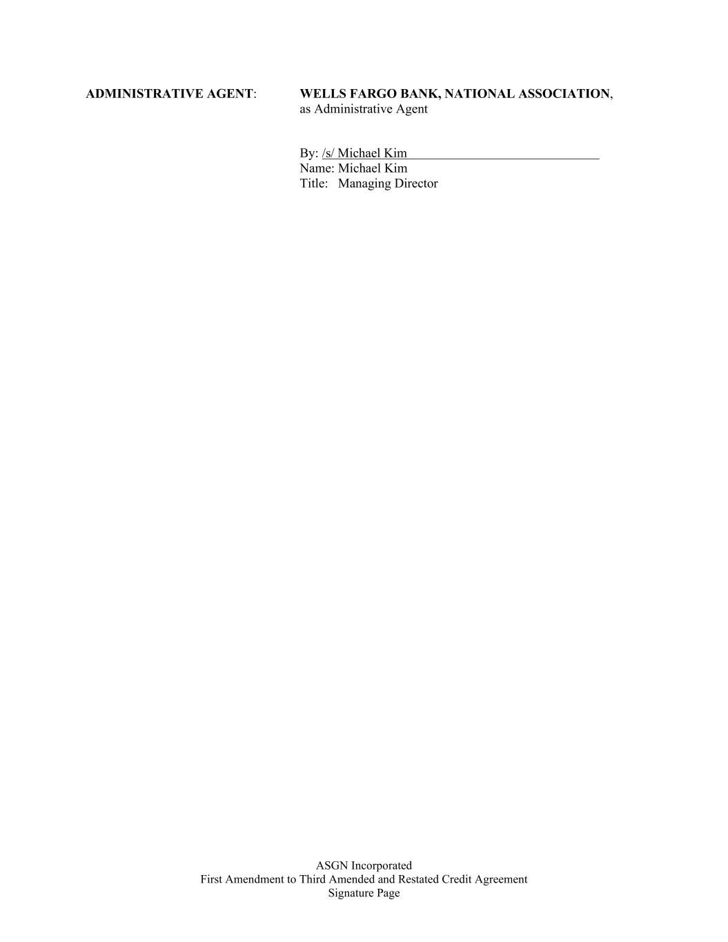 ASGN Incorporated First Amendment to Third Amended and Restated Credit Agreement Signature Page ADMINISTRATIVE AGENT: WELLS FARGO BANK, NATIONAL ASSOCIATION, as Administrative Agent By: /s/ Michael Kim Name: Michael Kim Title: Managing Director