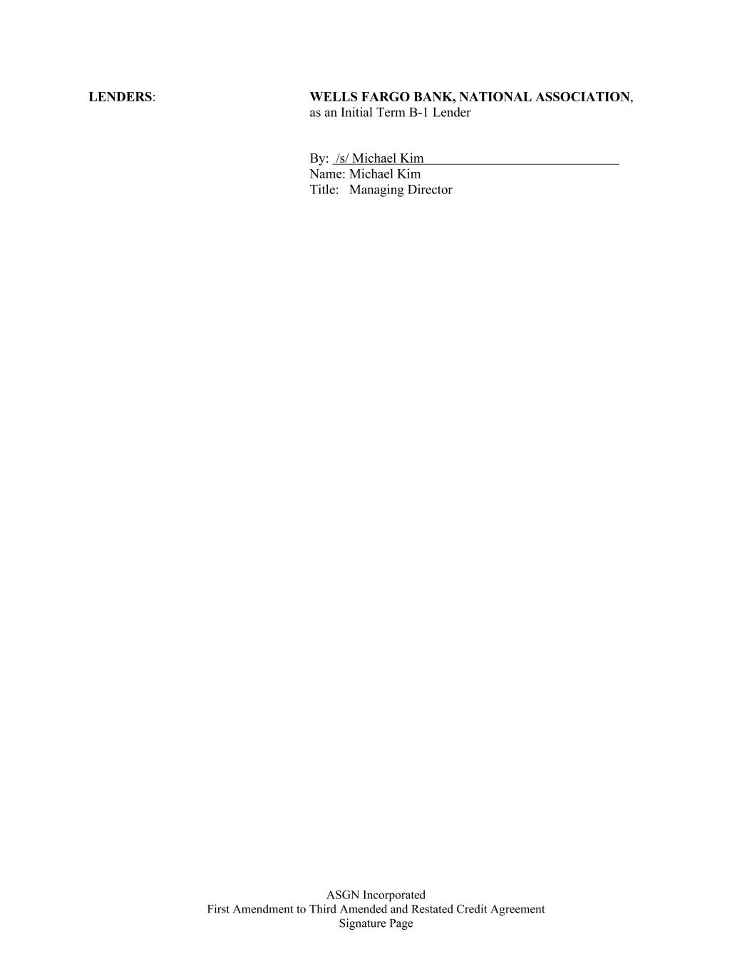 ASGN Incorporated First Amendment to Third Amended and Restated Credit Agreement Signature Page LENDERS: WELLS FARGO BANK, NATIONAL ASSOCIATION, as an Initial Term B-1 Lender By: /s/ Michael Kim Name: Michael Kim Title: Managing Director