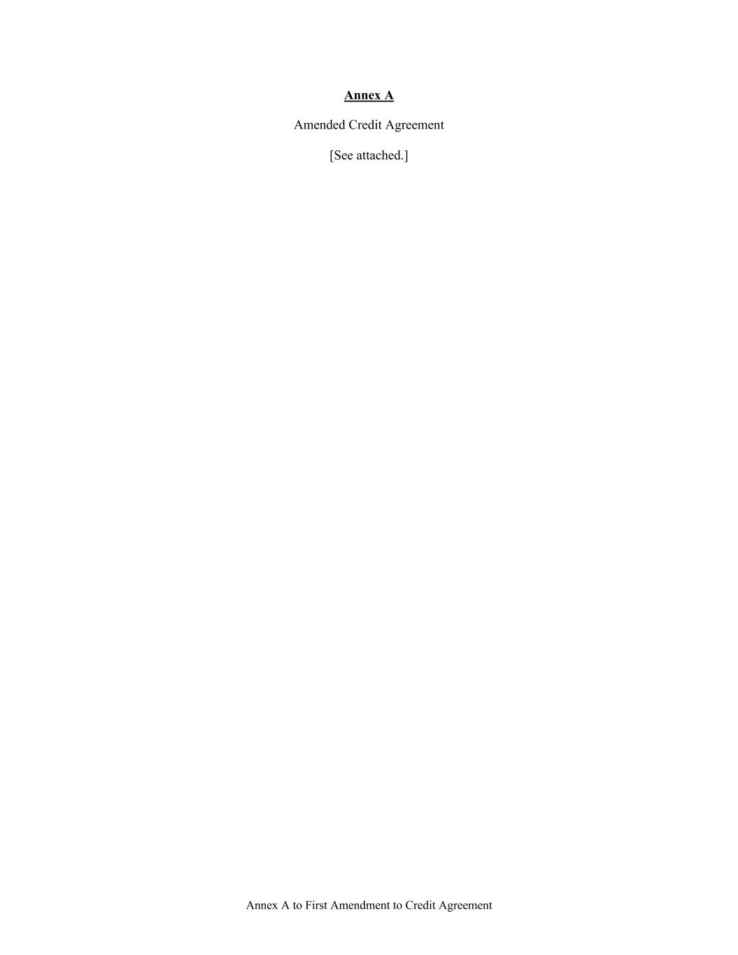 Annex A to First Amendment to Credit Agreement Annex A Amended Credit Agreement [See attached.]