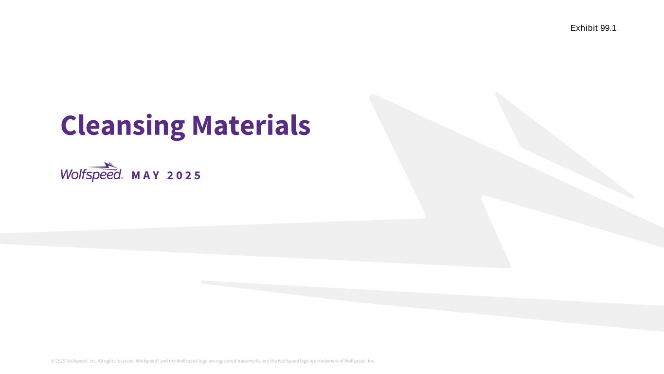 © 2025 Wolfspeed, Inc. All rights reserved. Wolfspeed® and the Wolfspeed logo are registered trademarks and the Wolfspeed logo is a trademark of Wolfspeed, Inc. M A Y 2 0 2 5 Cleansing Materials Exhibit 99.1