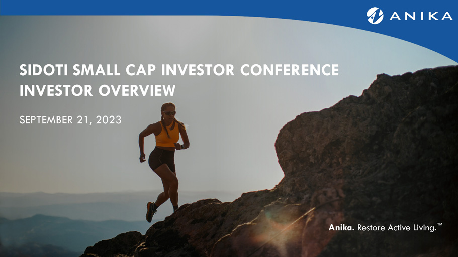 Anika. Restore Active Living. Œ SIDOTI SMALL CAP INVESTOR CONFERENCE INVESTOR OVERVIEW SEPTEMBER 21, 2023