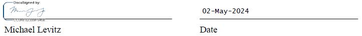 In connection with the Transition Period, at the Company’s request, you agree to (i) resign from any and all positions, including, without implication of limitation, as CFO, Section 16 Officer and principal financial officer of the Company and as a director, trustee or other officer, or other positions you occupy, or may be deemed to occupy, at the Company, or any of its subsidiaries or affiliates; (ii) execute such documentation as the Company or its applicable subsidiary or affiliate reasonably requires to effectuate such resignations; and (iii) take such steps as the Company (or its applicable subsidiary or affiliate) reasonably requests to ensure the transition of any account access, systems access, password access, customer access, confidential information, Company property, customer information or customer relationships to the Company or its applicable subsidiary or affiliate. You acknowledge and agree that your resignations described in the above subsection (i) shall be effective as of June 3, 2024.