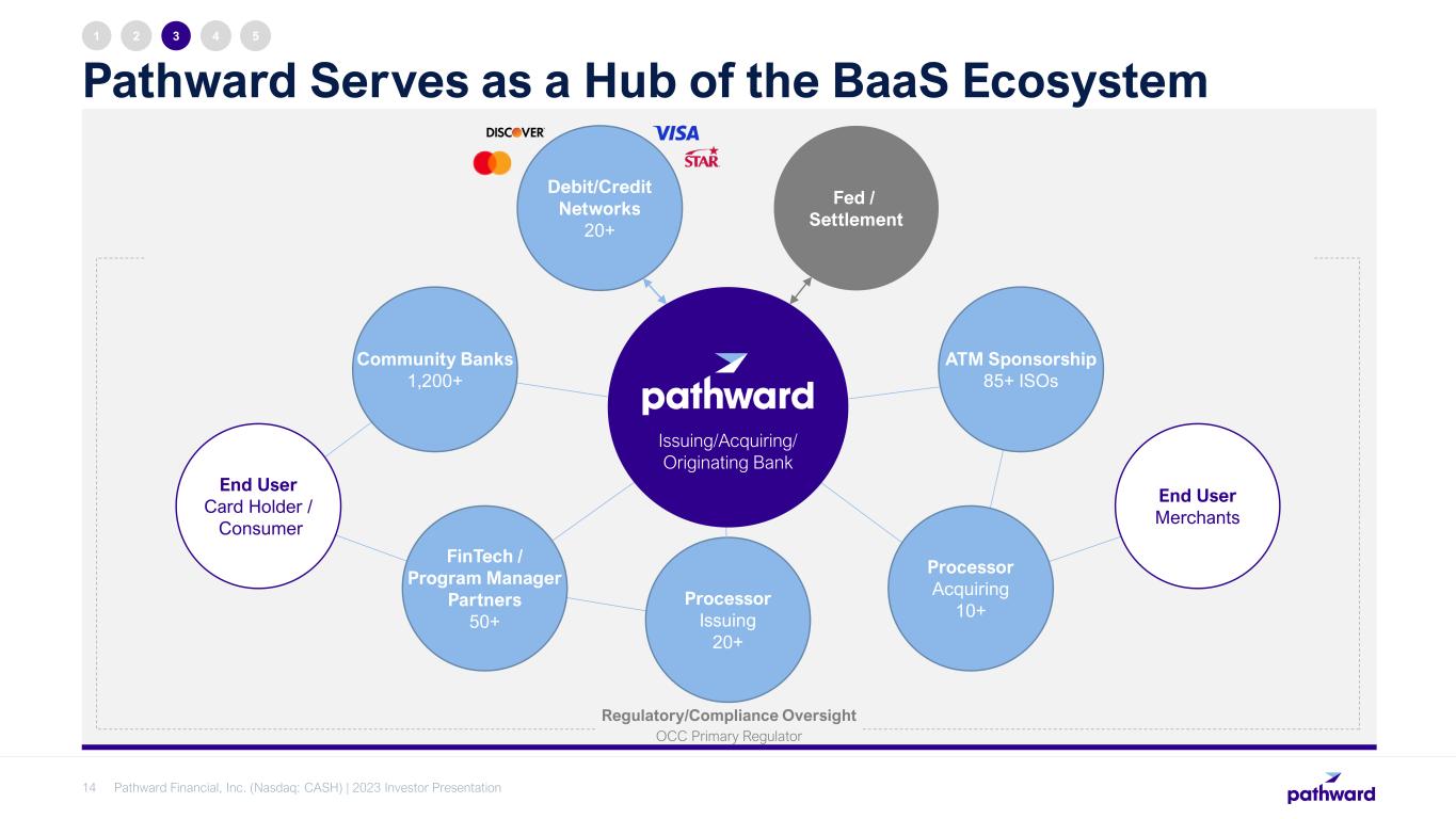 Leader in Fast-Growing BaaS Sector Pathward Financial, Inc. (Nasdaq: CASH) | 2023 Investor Presentation13 1 2 3 4 5 ~$2.5 Billion Moved daily in ACH and wire services >$10 Billion Moved since start of MasterCard Send and Visa Direct programs in 2020 >260,000 ATMs Sponsored >$11 Billion Tax refunds processed annually Top 20 NACHA – Top 20 ACH Originator and Receiver (#15, April 2021) >1 Billion Cards Issued >340,000 Points of distribution for debit and prepaid card issuing >11,000 Branches – networks & distribution channels for Pathward’s Agent Bank solutions
