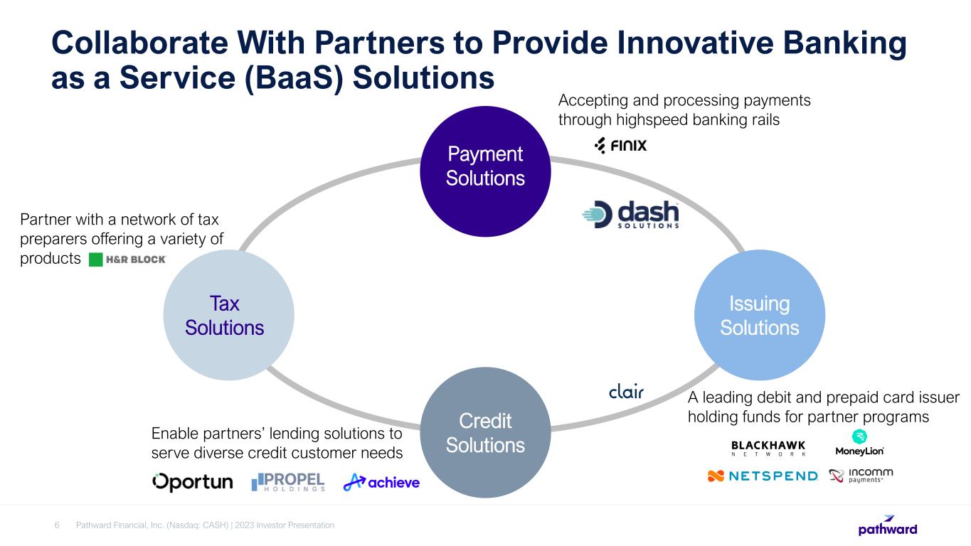 Pathward Financial, Inc. (Nasdaq: CASH) | 2023 Investor Presentation5 Resilient Business Model in Economic Cycles Stable funding via BaaS partner relationships Funding Earns consistent fees from the BaaS business Operates a collateralized lending platform that outperforms in down-cycles Income