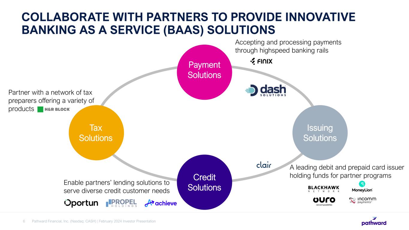 Stable funding via BaaS partner relationships Funding Earns consistent fees from the BaaS business Operates a collateralized lending platform that outperforms in down-cycles Income 5 RESILIENT BUSINESS MODEL IN ECONOMIC CYCLES Pathward Financial, Inc. (Nasdaq: CASH) | February 2024 Investor Presentation