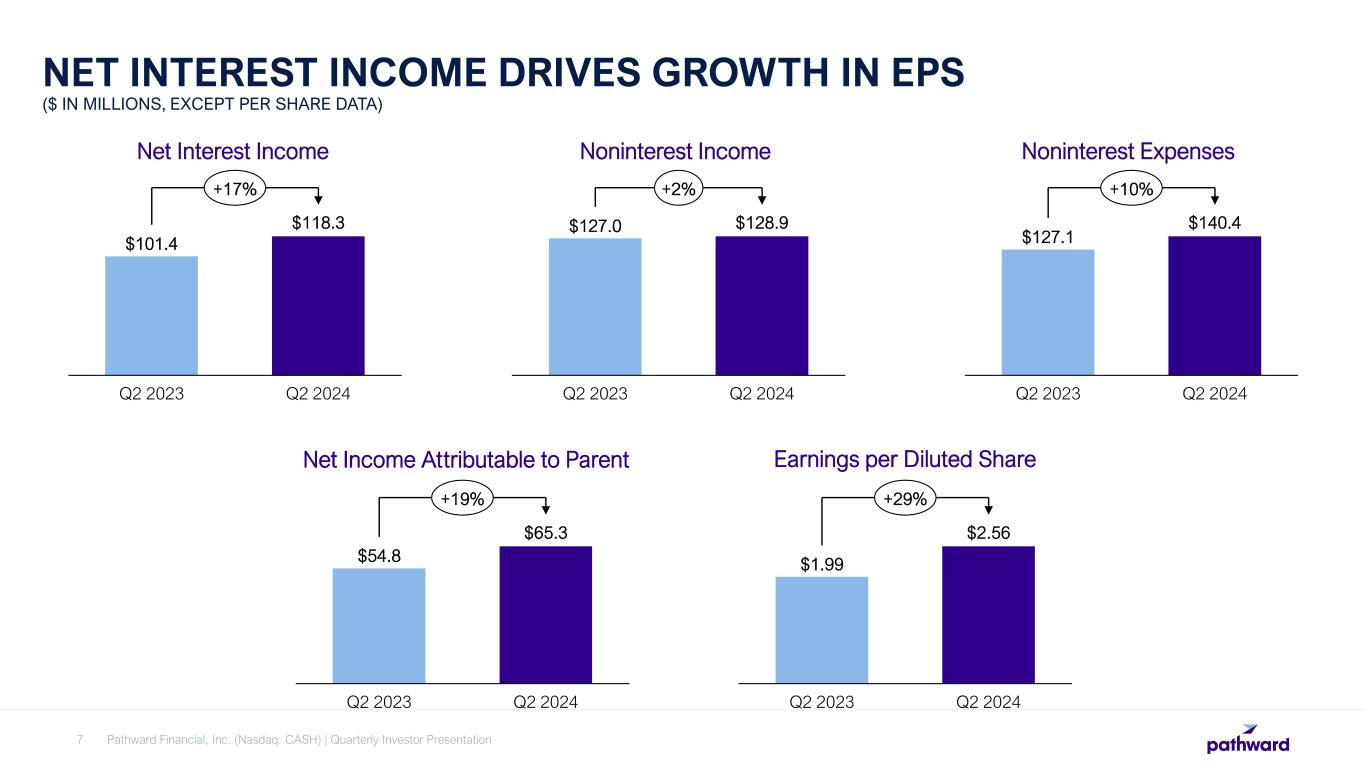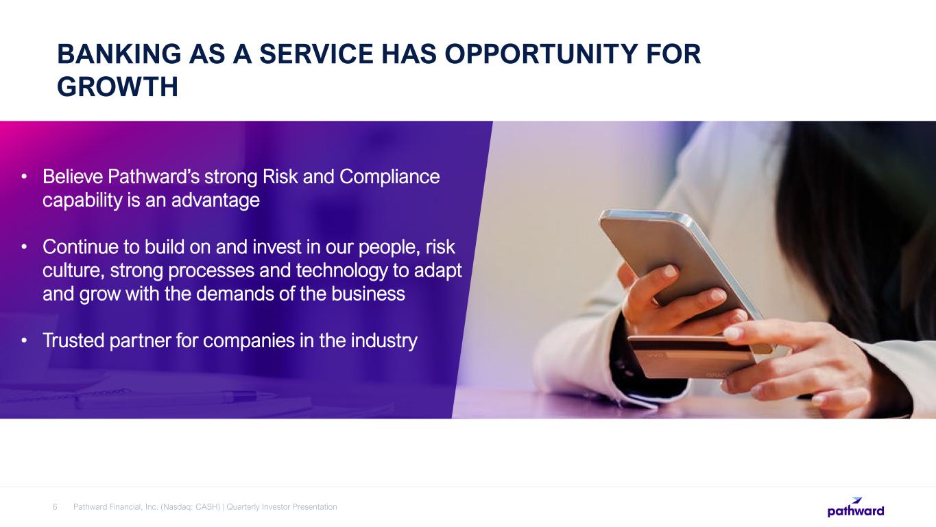 Pathward Financial, Inc. (Nasdaq: CASH) | Quarterly Investor Presentation6 • Believe Pathward’s strong Risk and Compliance capability is an advantage • Continue to build on and invest in our people, risk culture, strong processes and technology to adapt and grow with the demands of the business • Trusted partner for companies in the industry BANKING AS A SERVICE HAS OPPORTUNITY FOR GROWTH