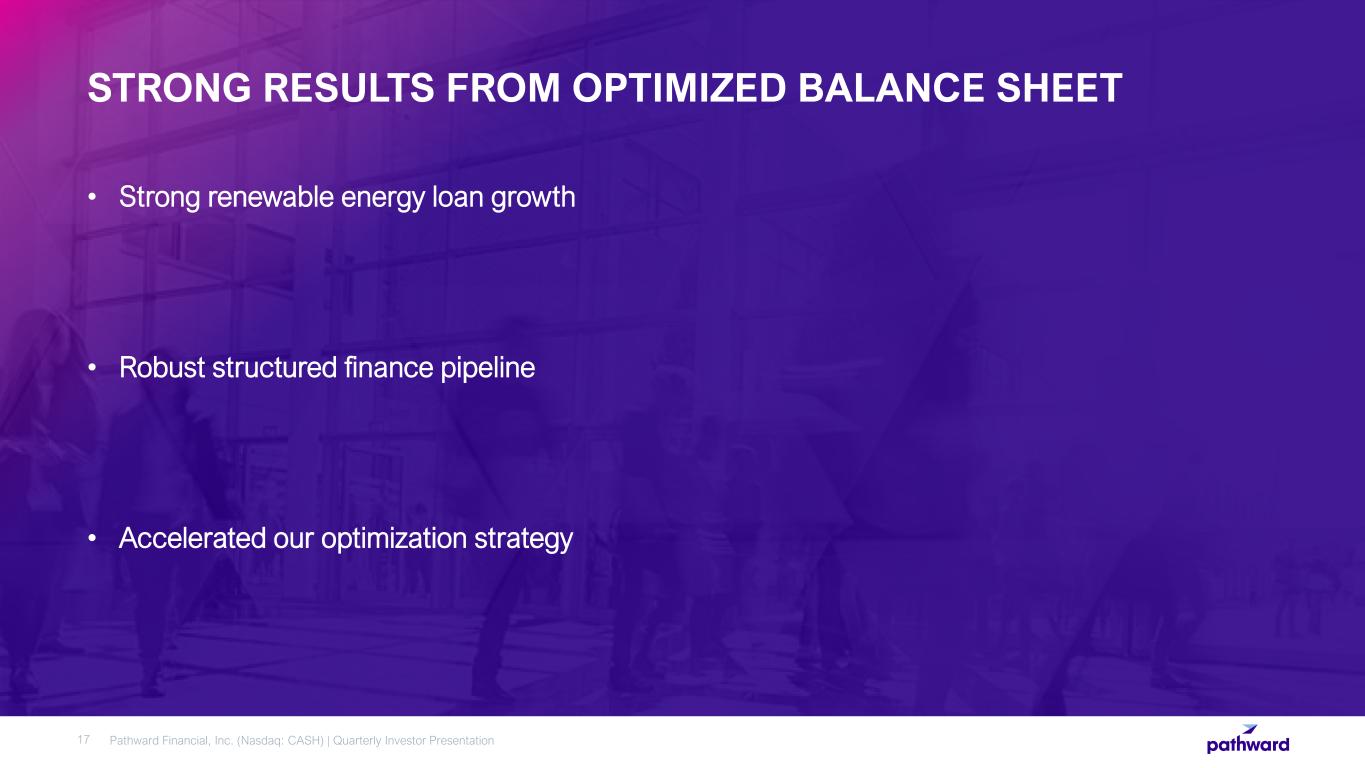 STRONG RESULTS FROM OPTIMIZED BALANCE SHEET • Strong renewable energy loan growth • Robust structured finance pipeline • Accelerated our optimization strategy 17 Pathward Financial, Inc. (Nasdaq: CASH) | Quarterly Investor Presentation