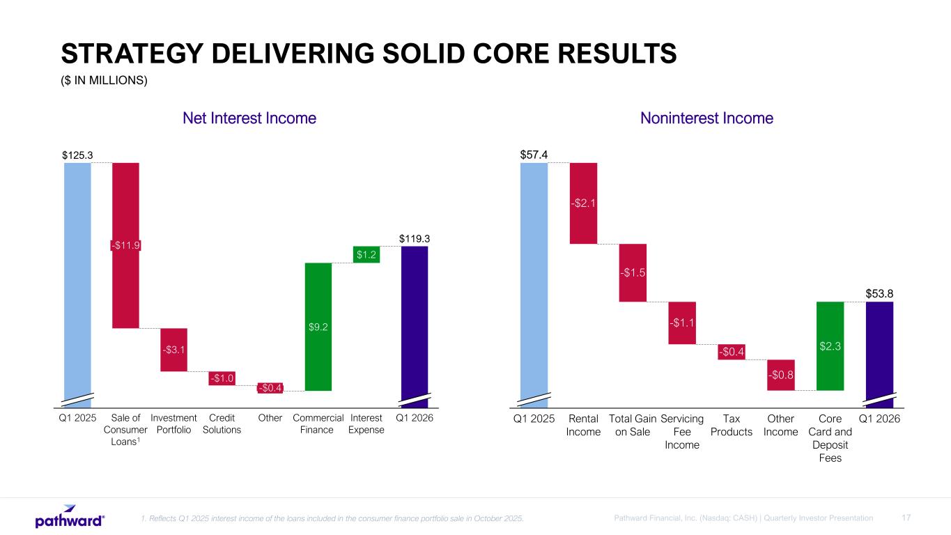 16Pathward Financial, Inc. (Nasdaq: CASH) | Quarterly Investor Presentation Maintain an optimized balance sheet Technology to facilitate evolution and scalability People and culture are important assets Mature risk and compliance framework Client experience TRUSTED PLATFORM THAT ENABLES OUR PARTNERS TO THRIVE