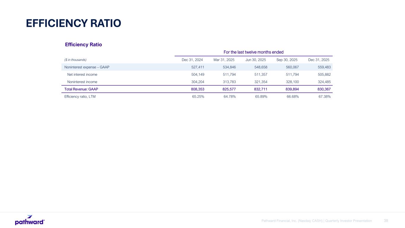 37Pathward Financial, Inc. (Nasdaq: CASH) | Quarterly Investor Presentation APPENDIX