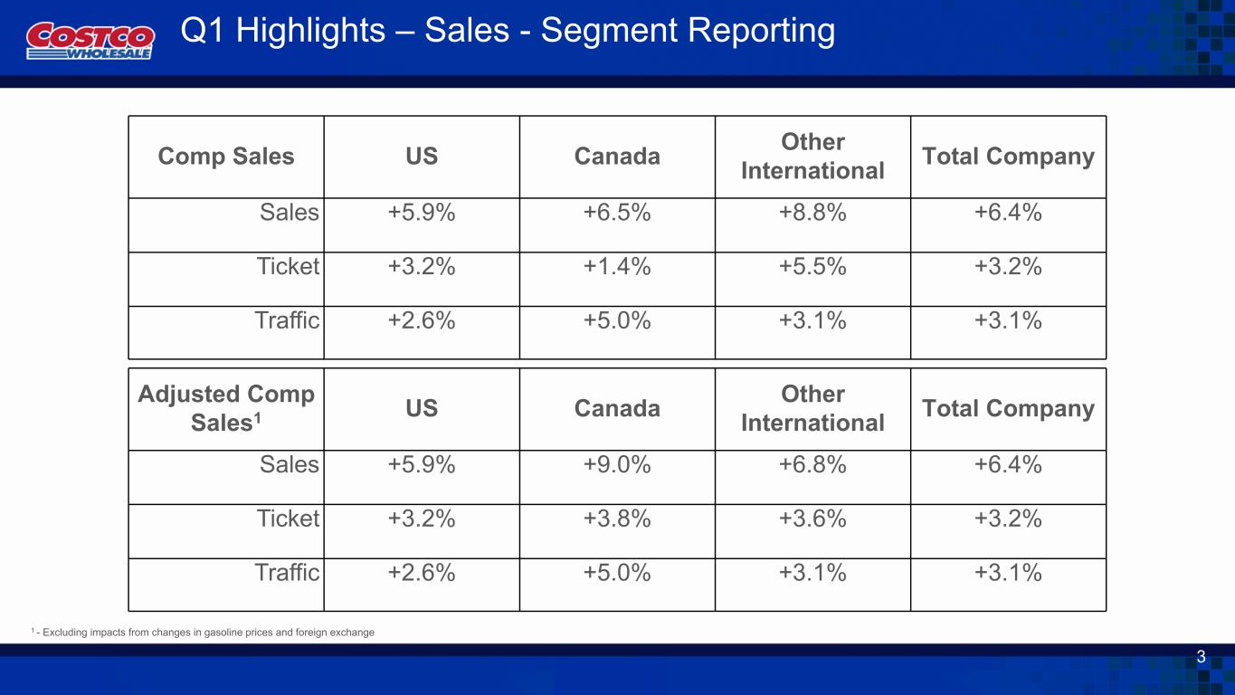 $66.0B Net Sales +8.2% Growth +6.4% Comparable Sales +6.4% Adjusted Comparable Sales1 +3.1% Comparable Traffic +20.5% Digitally-Enabled Comparable Sales +20.5% Adjusted Digitally-Enabled Comparable Sales2 Q1 Highlights - Sales 1 - Excluding impacts from changes in gasoline prices and foreign exchange 2 – Digitally-Enabled Comparable Sales excluding impacts from FX 2 +3.2% Comparable Ticket +3.2% Adjusted Comparable Ticket1