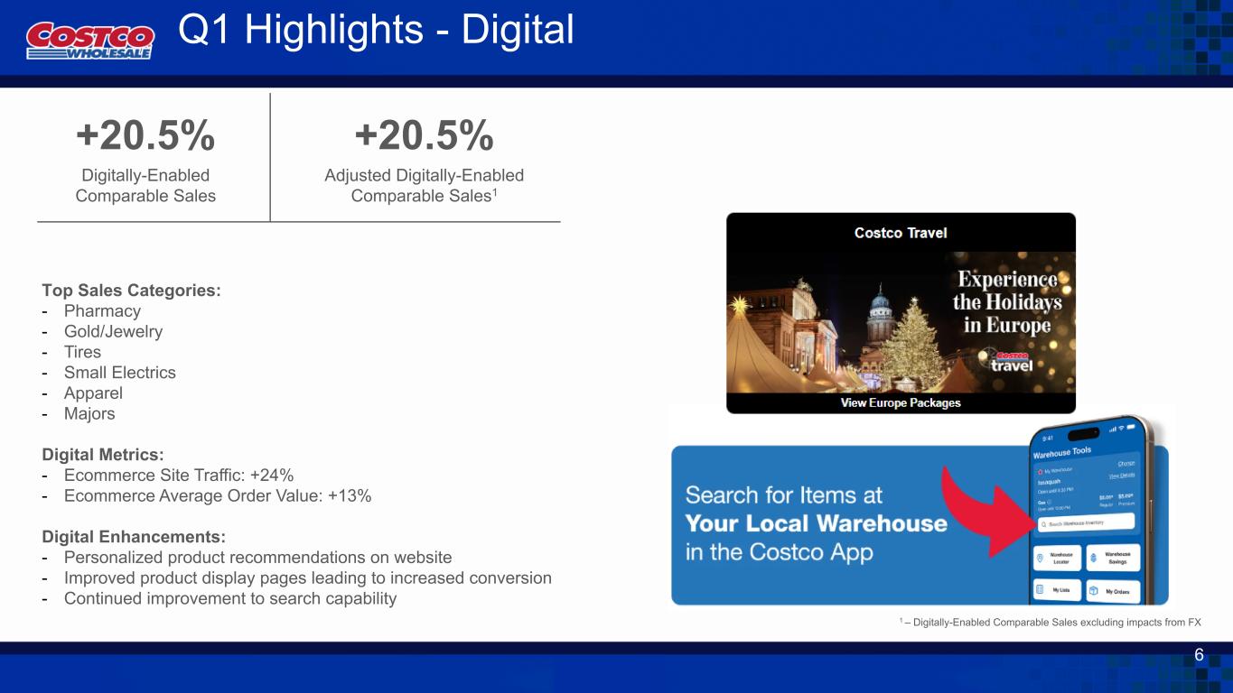 +20.5% Digitally-Enabled Comparable Sales 1 – Digitally-Enabled Comparable Sales excluding impacts from FX +20.5% Adjusted Digitally-Enabled Comparable Sales1 Top Sales Categories: - Pharmacy - Gold/Jewelry - Tires - Small Electrics - Apparel - Majors Digital Metrics: - Ecommerce Site Traffic: +24% - Ecommerce Average Order Value: +13% Digital Enhancements: - Personalized product recommendations on website - Improved product display pages leading to increased conversion - Continued improvement to search capability Q1 Highlights - Digital 6