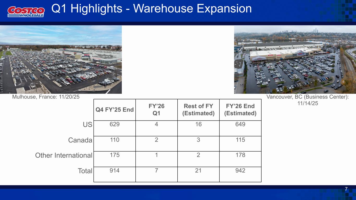Q1 Highlights - Warehouse Expansion Mulhouse, France: 11/20/25 7 Vancouver, BC (Business Center): 11/14/25 Q4 FY’25 End FY’26 Q1 Rest of FY (Estimated) FY’26 End (Estimated) US 629 4 16 649 Canada 110 2 3 115 Other International 175 1 2 178 Total 914 7 21 942