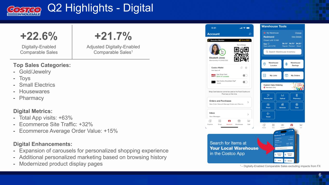 +22.6% Digitally-Enabled Comparable Sales 1 – Digitally-Enabled Comparable Sales excluding impacts from FX +21.7% Adjusted Digitally-Enabled Comparable Sales1 Top Sales Categories: - Gold/Jewelry - Toys - Small Electrics - Housewares - Pharmacy Digital Metrics: - Total App visits: +63% - Ecommerce Site Traffic: +32% - Ecommerce Average Order Value: +15% Digital Enhancements: - Expansion of carousels for personalized shopping experience - Additional personalized marketing based on browsing history - Modernized product display pages Q2 Highlights - Digital 6