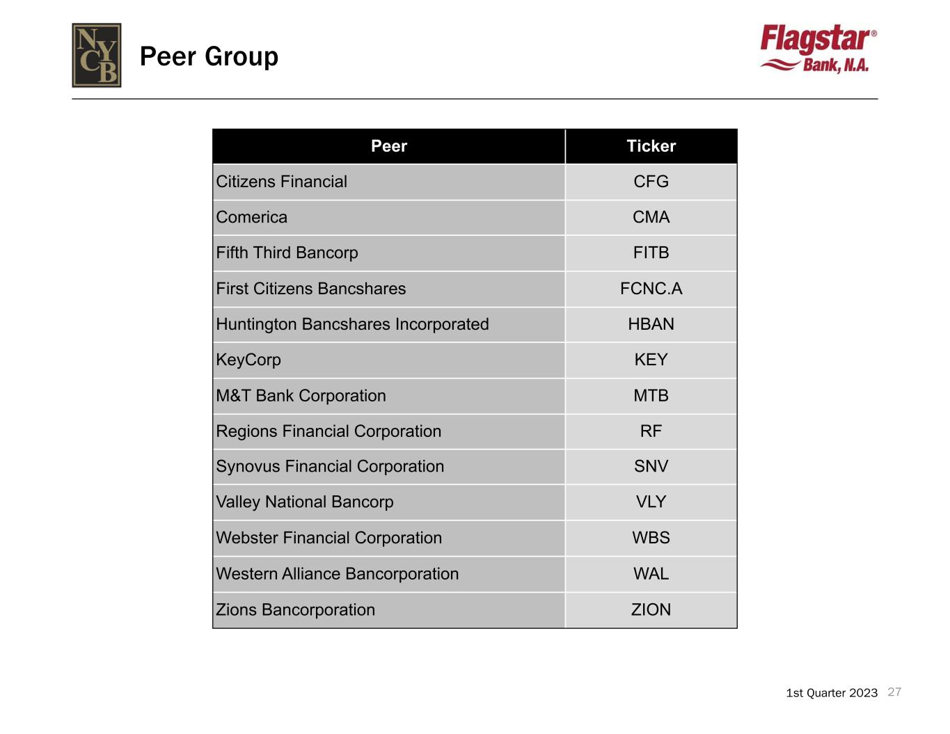 271st Quarter 2023 Peer Group Peer Ticker Citizens Financial CFG Comerica CMA Fifth Third Bancorp FITB First Citizens Bancshares FCNC.A Huntington Bancshares Incorporated HBAN KeyCorp KEY M&T Bank Corporation MTB Regions Financial Corporation RF Synovus Financial Corporation SNV Valley National Bancorp VLY Webster Financial Corporation WBS Western Alliance Bancorporation WAL Zions Bancorporation ZION
