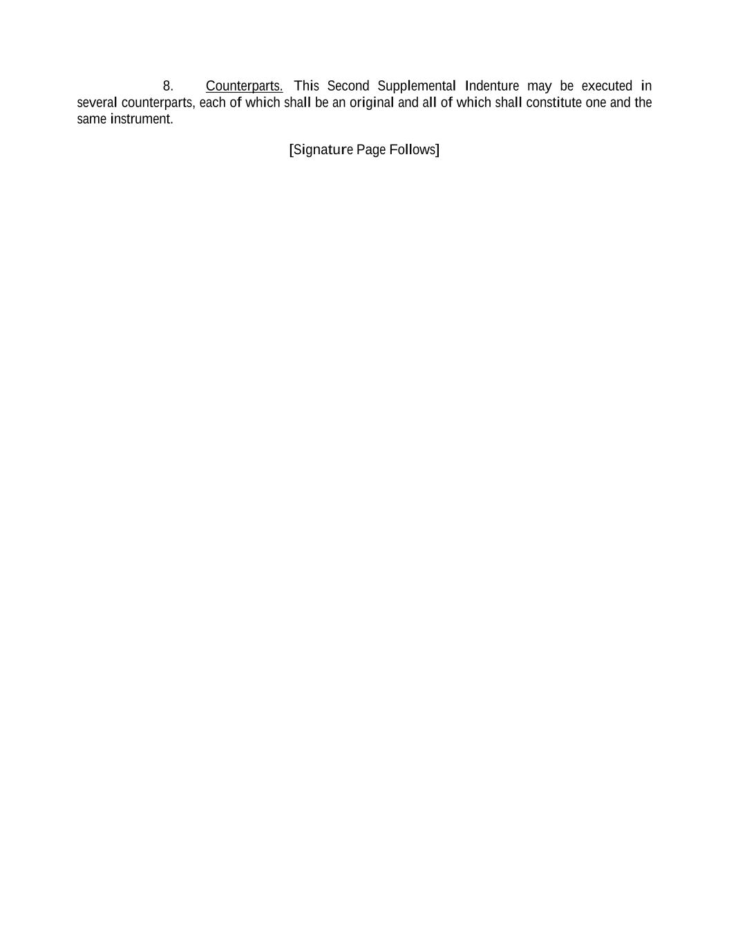 8. Counterparts. This Second Supplemental Indenture may be executed in several counterparts, each of which shall be an original and all of which shall constitute one and the same instrument. [Signature Page Follows]