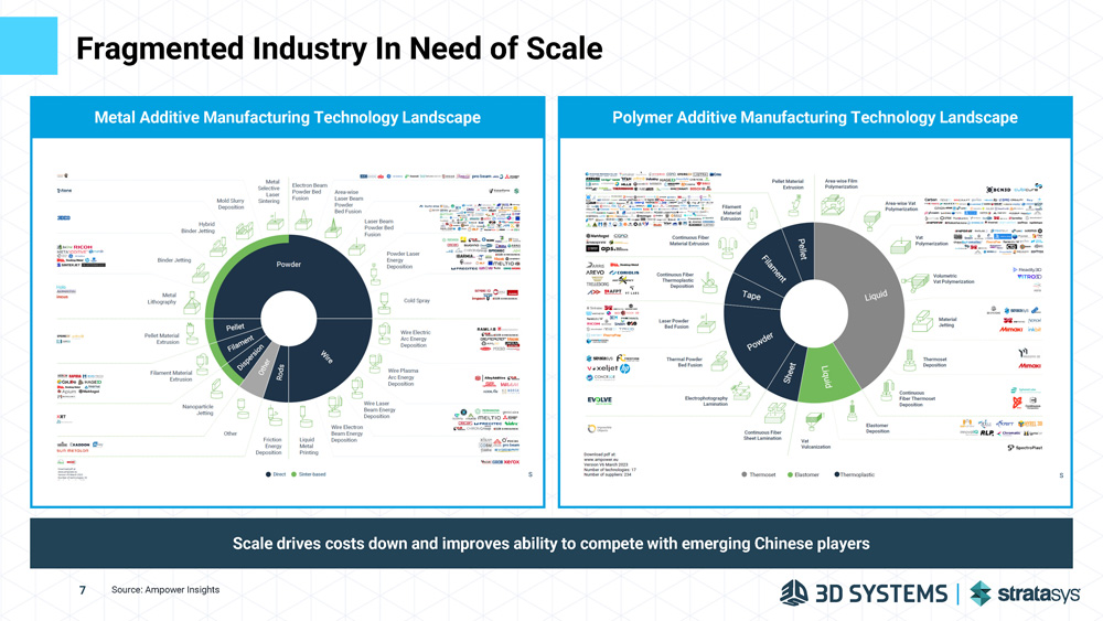 Fragmented Industry In Need of Scale 7 Metal Additive Manufacturing Technology Landscape Polymer Additive Manufacturing Technology Landscape Scale drives costs down and improves ability to compete with emerging Chinese players Source: Ampower Insights