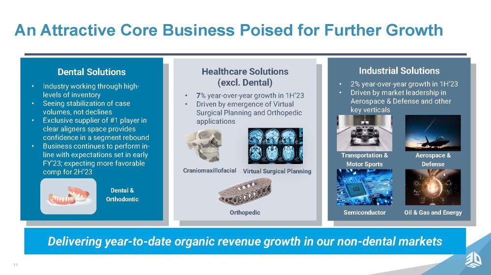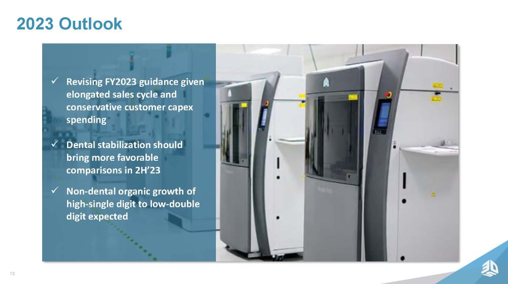An Attractive Core Business Poised for Further Growth 11 Healthcare Solutions (excl. Dental) • 7 % year - over - year growth in 1H’23 • Driven by emergence of Virtual S urgical Planning and Orthopedic applications Delivering year - to - date organic revenue growth in our non - dental markets Aerospace & Defense Transportation & Motor Sports Semiconductor Oil & Gas and Energy Craniomaxillofacial Orthopedic Virtual Surgical Planning Dental Solutions • Industry working through high - levels of inventory • Seeing stabilization of case volumes, not declines • Exclusive supplier of #1 player in clear aligners space provides confidence in a segment rebound • Business continues to perform in - line with expectations set in early FY’23; expecting more favorable comp for 2H’23 Dental & Orthodontic Industrial Solutions • 2 % year - over - year growth in 1H’23 • Driven by market leadership in Aerospace & Defense and other key verticals Aerospace & Defense Transportation & Motor Sports Semiconductor Oil & Gas and Energy