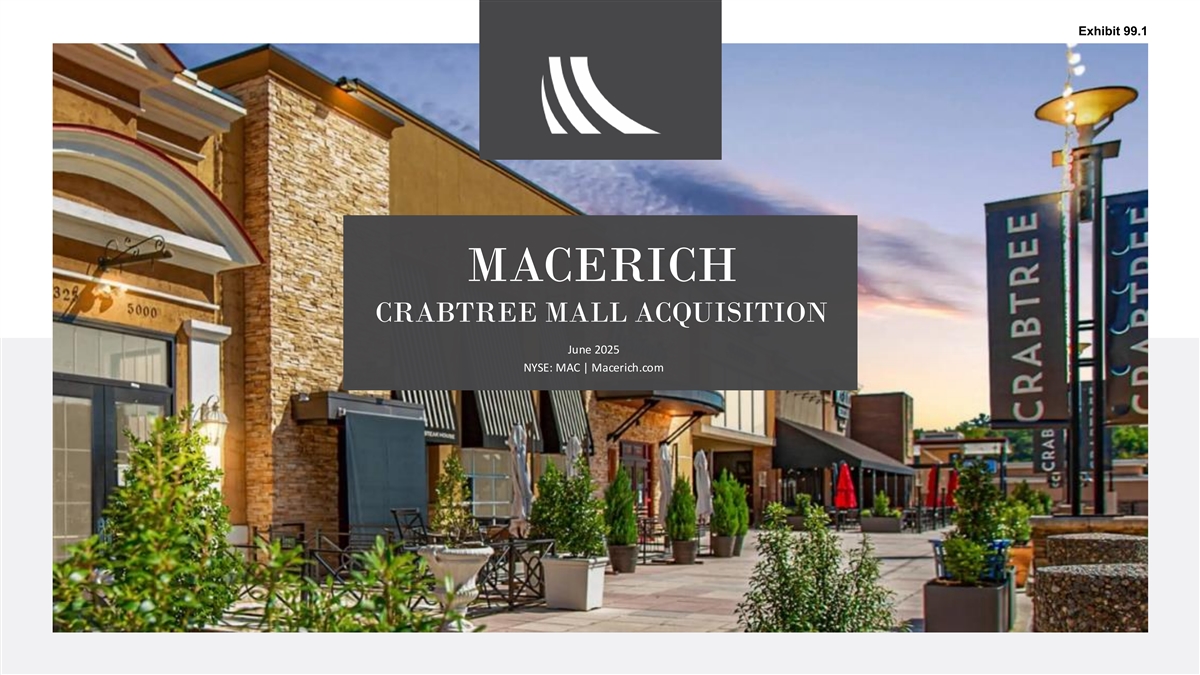 Exhibit 99.1 MACERICH CRABTREE MALL ACQUISITION June 2025 NYSE: MAC | Macerich.com