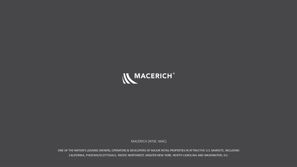 MACERICH (NYSE: MAC) ONE OF THE NATION’S LEADING OWNERS, OPERATORS & DEVELOPERS OF MAJOR RETAIL PROPERTIES IN ATTRACTIVE U.S. MARKETS, INCLUDING CALIFORNIA, PHOENIX/SCOTTSDALE, PACIFIC NORTHWEST, GREATER NEW YORK, NORTH CAROLINA AND WASHINGTON, D.C.
