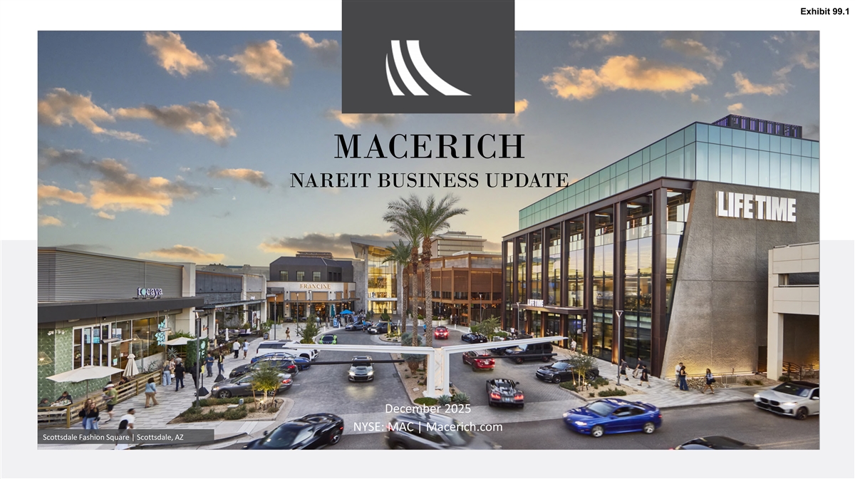 Exhibit 99.1 MACERICH NAREIT BUSINESS UPDATE December 2025 NYSE: MAC | Macerich.com Scottsdale Fashion Square | Scottsdale, AZ