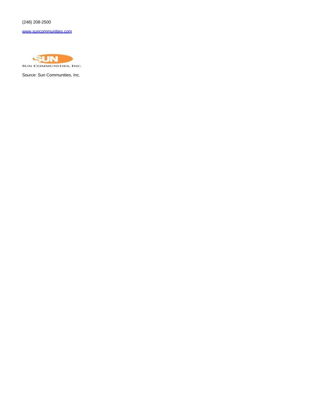 (248) 208-2500 www.suncommunities.com Source: Sun Communities, Inc.