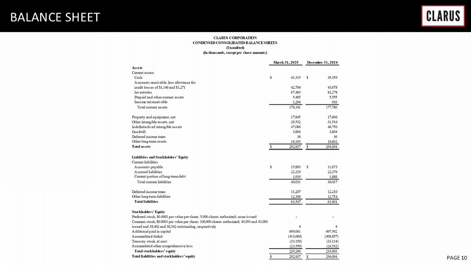 6 February 2023 PAGE 8 NET SALES Q1 2025 FINANCIAL RESULTS Q1 202 5 ADJ. GROSS MARGIN ADJ. EBITDA ADJ. EBITDA MARGIIN (1.3)% ($ 0.8 M) 34.6% $60.4M Q1 202 4 2.9% $ 2.0 M 36.9% $69.3M • Due to ongoing macroeconomic uncertainty stemming from U.S. global trade policies, including the impact of tariffs and resulting potential consequences on consumer demand, withdrawing previously issued FY 2025 revenue, adjusted EBITDA, capital expenditures and free cash flow guidance