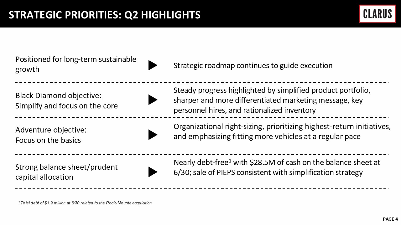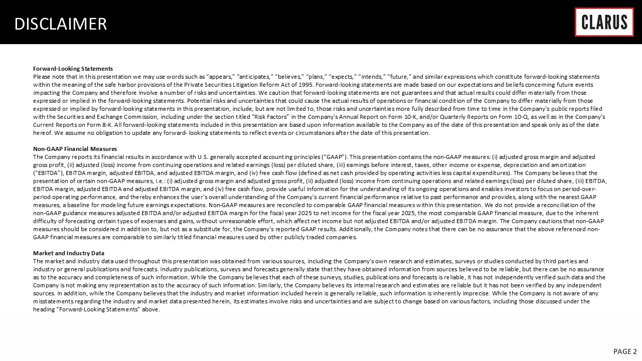 Warren Kanders EXECUTIVE CHAIRMAN Clarus TODAY’S PRESENTERS Mike Yates CFO Clarus Neil Fiske PRESIDENT Black Diamond Equipment