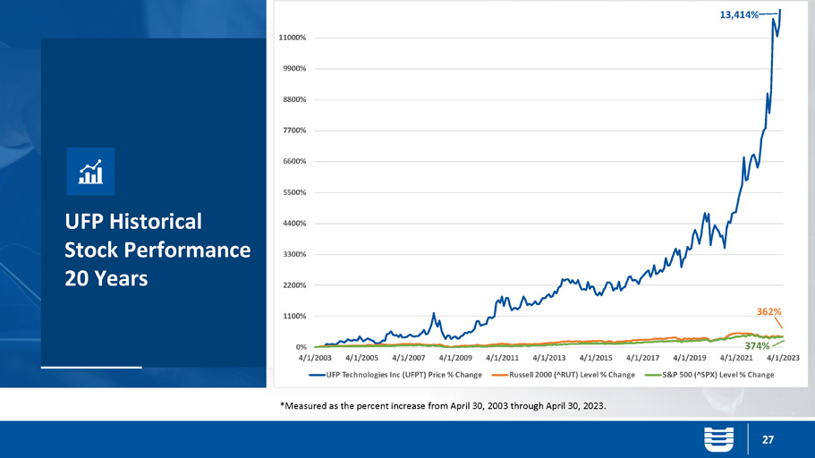 R. Jeffrey Bailly Chairman, CEO & President Newburyport, Massachusetts Ronald Lataille CFO, Sr. VP & Treasurer Newburyport, Massachusetts UFP Technologies 100 Hale St. Newburyport, MA 01950 978 - 352 - 2200 investorinfo@ufpt.com www.ufpt.com