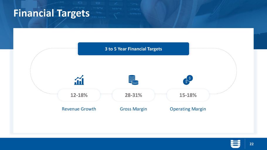 Financial Targets 22 3 to 5 Year Financial Targets 12 - 18% Revenue Growth 28 - 31% Gross Margin 15 - 18% Operating Margin
